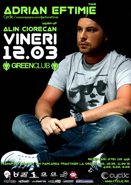 Vineri, 12 martie 2010, Adrian Eftimie va mixa în Green Club din Brăila.