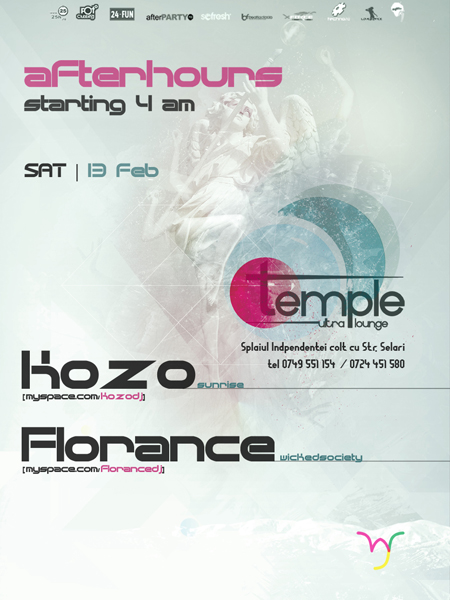 Sâmbătă, 13 februarie 2010, ora 4:00, Club Temple din București ne invită la Afterhours Party.