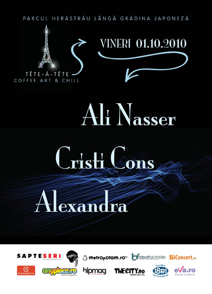 Vineri, 1 octombrie 2010, ora 23:00, Ali Nasser, Cristi Cons & Alexandra vor mixa la Tête-à-Tête Coffee Art & Chill din Bucureşti.