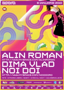 Vineri, 8 ianuarie 2010, ora 22:00, Alin Roman va mixa in Zebra Club din Bacau.