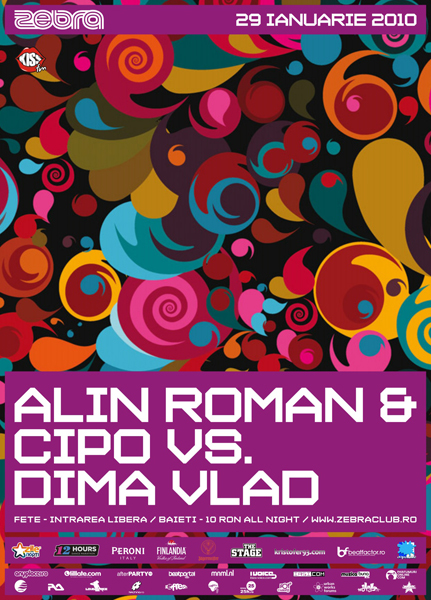 Vineri, 29 ianuarie 2010, ora 22:00, Alin Roman vs Cipo vs Dima Vlad vor mixa în Zebra Club din Bacău.