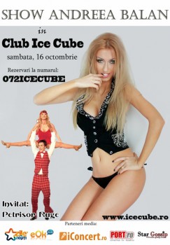 Sâmbătă, 16 octombrie 2010, Club Ice Cube din Breaza ne invită la distracţie alături de Andreea Bălan şi Petrisor Ruge.