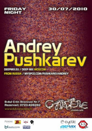 Vineri, 30 iulie 2010, Andrey Pushkarev va mixa în Club Caractere din Târgu Jiu.