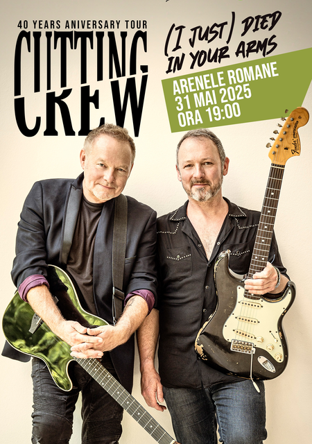 Sâmbătă, 31 mai 2025, de la ora 19:00, trupa britanică Cutting Crew susține primul său concert în România, pe scena Arenelor Romane din București, în cadrul turneului aniversar ce marchează 40 de ani de carieră.