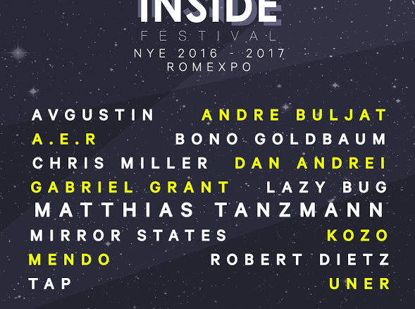 În perioada 31 decembrie 2016 – 2 ianuarie 2017, se desfăşoară prima ediţie iNSIDE Festival, în Pavilionul C6 al Romexpo din Bucureşti. Bono Goldbaum, Chris Miller, Mirror States, Kozo şi Robert Dietz se numără printre artiştii invitaţi la petrecerea de Revelion.
