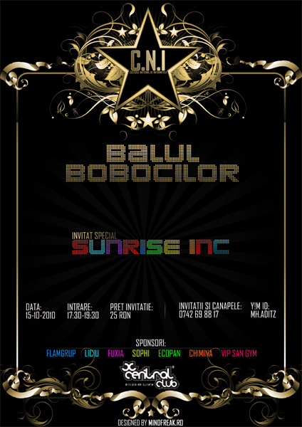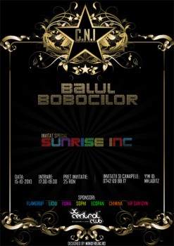 Vineri, 15 octombrie 2010, ora 17:30, la Club Central din Piatra Neamţ are loc Balul Bobocilor de la „Colegiul National de Informatica Piatra Neamţ„.
