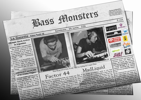Sâmbătă, 26 iunie 2010, ora 23:00, în La Gazette din Cluj-Napoca are loc petrecerea „Bass Monsters” cu Factor 44 & MadLiquid.