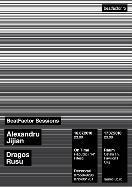 Vineri, 16 iulie 2010, ora 23:00, în Club On Time din Piteşti are loc petrecerea „BeatFactor Session„.