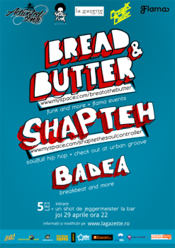 Joi, 29 aprilie 2010, ora 22:00, Bread & Butter, Shapteh şi Badea vor mixa în clubul La Gazette din Cluj-Napoca.