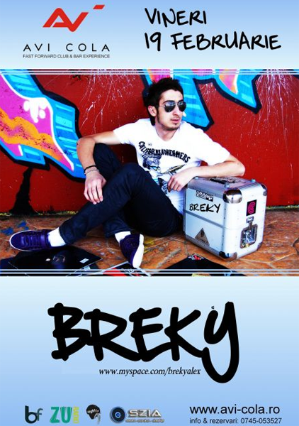 Vineri, 19 februarie 2010, ora 23:00, Breky va mixa în clubul Avi-Cola din Târgu Mureş.