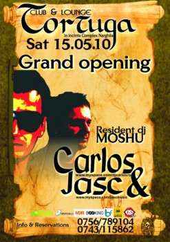 Sâmbătă, 15 mai 2010, Carlos & JASC vor mixa la petrecere de inaugurare a Clubului Tortuga din Baia Mare.