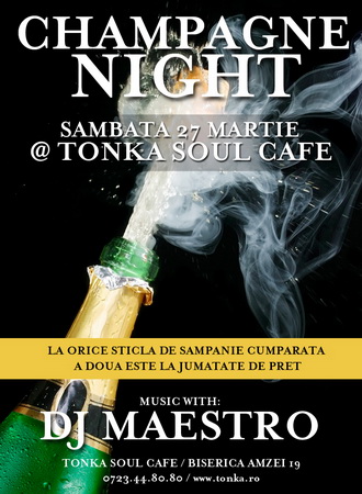 Sâmbătă, 27 martie 2010, în Club Tonka din Bucureşti este „Chanpagne Night” cu DJ Maestro la platane.