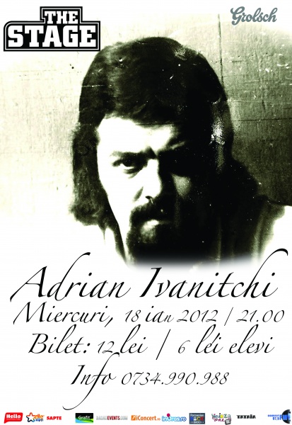 Miercuri, 18 ianuarie 2012, de la ora 21:00, în Club The Stage din Bacău va concerta Adrian Ivanitchi în cadrul „Seara de Folk”.