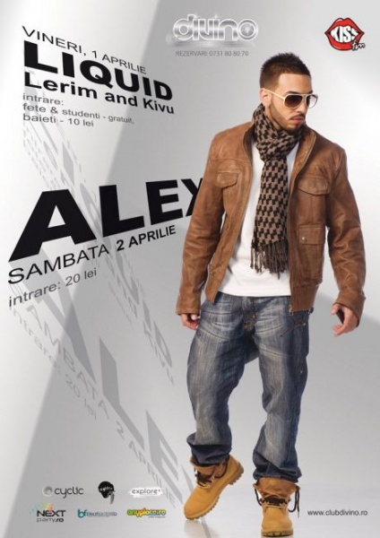 Sâmbătă, 2 aprilie 2011, Alex Velea va concerta în Club Divino din Galaţi, începând cu ora 23:00.