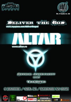 Sâmbătă, 6 martie 2010, trupele Altar & Deliver The God vor concerta în Club Fabrica din Bucureşti.