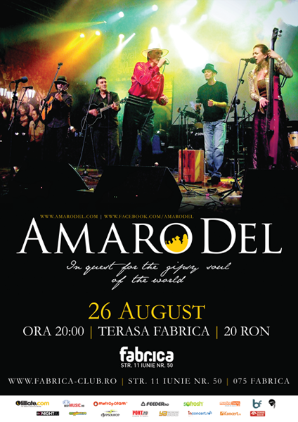 Joi, 26 august 2010, ora 20:00, formaţia Amaro Del va concerta pe terasa Clubului Fabrica din Bucureşti.