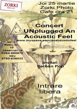 Joi, 25 martie 2010, Zorki Photo Cafe din Cluj-Napoca ne invită la concertul unplugged susţinut de An Acoustic Feel.