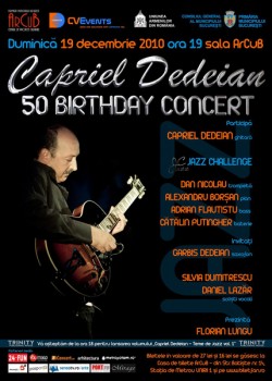 Duminică, 19 decembrie 2010, ora 19:00, la Sala ArCuB din Bucureşti are loc concertul aniversar al chitaristului şi compozitorului Capriel Dedeian – „50 Birthday Concert„.