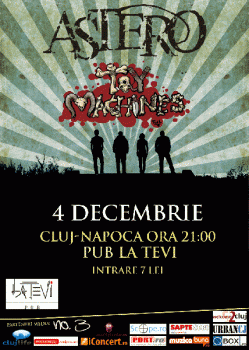 Sâmbătă, 4 decembrie 2010, ora 21:00, trupa Astero va cânta în La Tevi Pub din Cluj-Napoca.