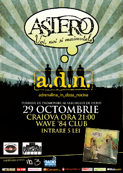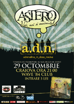 Vineri, 29 octombrie 2010, ora 21:00, formaţia Astero va cânta la Club Wave ’84 din Craiova.