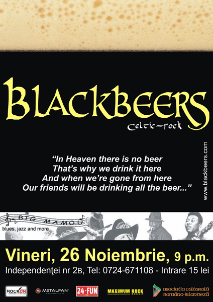 Vineri, 26 noiembrie 2010, ora 21:00, trupa Blackbeers va concerta la Big Mamou din Bucureşti.
