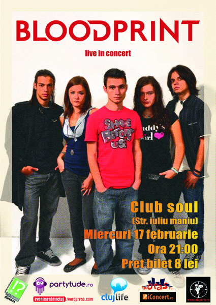 Miercuri, 17 februarie 2010, ora 21:00, trupa BloodPrint va concerta la Club Soul din Cluj-Napoca.