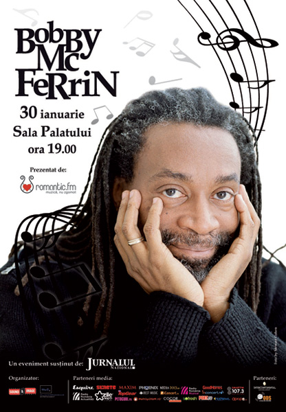 Sambata, 30 ianuarie 2010, ora 19:00, Bobby McFerrin va concerta la Sala Palatului din Bucuresti.