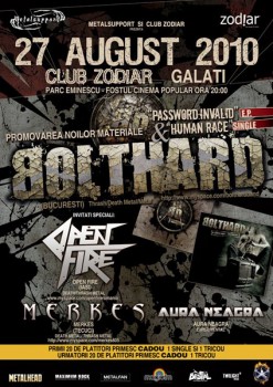 Vineri, 27 august 2010, ora 20:00, trupa Bolthard va concerta în Club Zodiar din Galaţi.