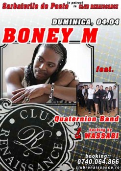 Duminică, 4 aprilie 2010, Bonny M feat. Quaternion Band vor concerta în Club Renaissance din Arad.