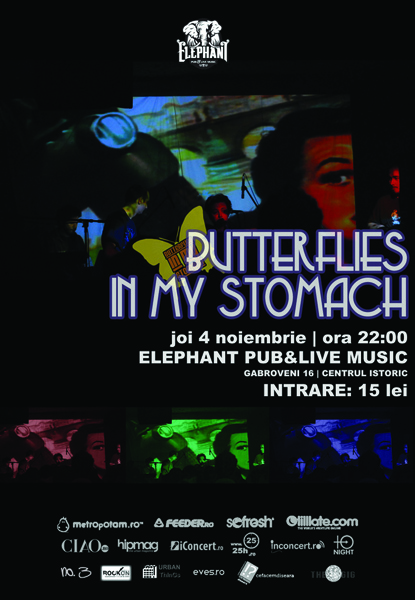 Joi, 4 noiembrie 2010, ora 22:00, trupa Butterflies in My Stomach va concerta la Elephant Pub din Bucureşti.