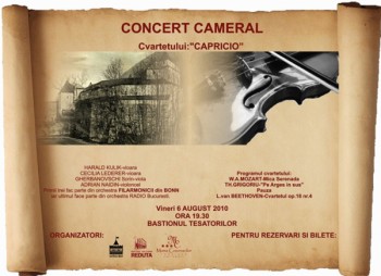 Vineri, 6 august 2010, ora 19:00, la Bastionul Ţesătorilor Braşov va avea loc un concert cameral cu Cvartetul Capricio.