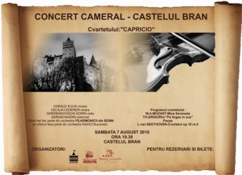 Sâmbătă, 7 august 2010, ora 19:30, la Castelul Bran din Bran are loc „Concert Cameral” cu Cvartetul Capricio.
