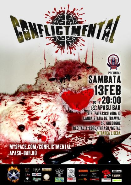 Sâmbătă, 13 februarie 2010, ora 20:00, trupa Conflict Mental va concerta la Apasu Bar din Bucureşti.