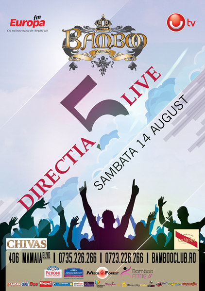 Sâmbătă, 14 august 2010, trupa Direcţia 5 va concerta în Club Bamboo din Mamaia.