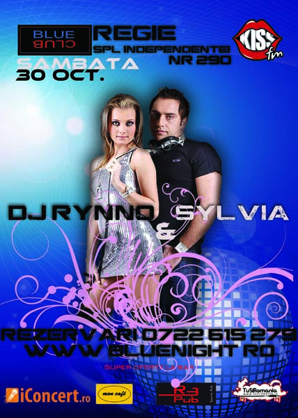 Sâmbătă, 30 octombrie 2010, Blue Night Club din Bucureşti ne invită la distracţie alături de DJ Rhynno & Sylvia.