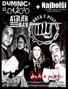 Duminică, 11 aprilie 2010, trupa Drek U Pest va concerta la Atelier D.I.Y. din Timişoara.