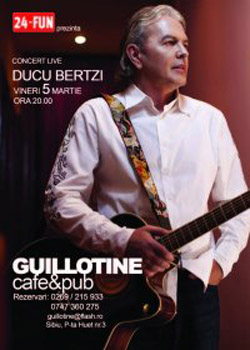 Vineri, 5 martie 2010, ora 20:00, Ducu Bertzi va concerta în Guillotine Pub din Sibiu.