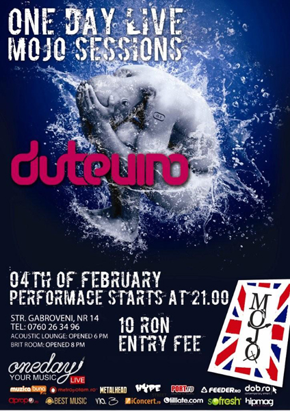 Joi, 4 februarie 2010, ora 21:00, in Club Mojo-Brit Room din Bucuresti va concerta trupa Dutevino.