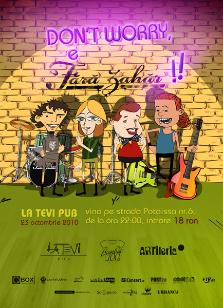 Sâmbătă, 23 octombrie 2010, ora 22:00, trupa Fără Zahăr va concerta la aniversarea unui an de La Tevi Pub din Cluj-Napoca.