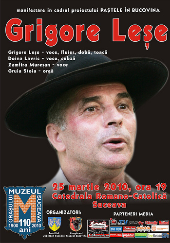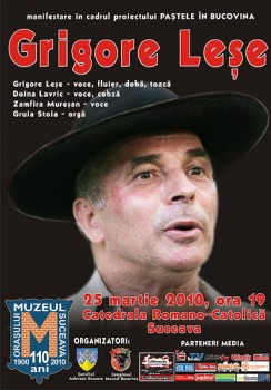 Joi, 25 martie 2010, ora 19:00, Grigore Lese va concerta la Catedrala Romano-Catolică din Suceava.