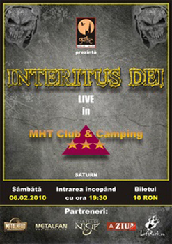 Sâmbătă, 6 februarie 2010, ora 19:30, trupa Interitus Dei va concerta la MHT Club Camping din Saturn.