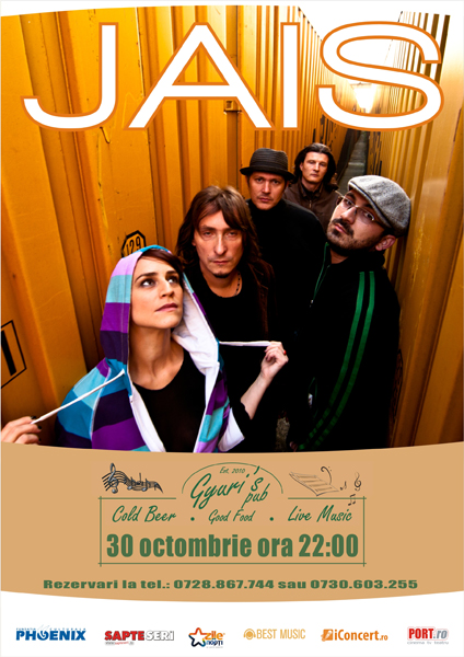 Sâmbătă, 30 octombrie 2010, ora 22:00, trupa Jais va concerta la Gyuri’s Pub din Bucureşti.