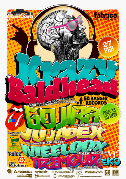 Sâmbătă, 27 februarie 2010, ora 22:00, Krazy Baldhead va mixa în Club Fabrica din Bucureşti.