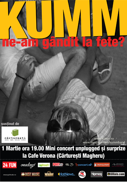 Luni, 1 martie 2010, ora 19:00, trupa Kumm va concerta unplugged la Cafe Verona din Bucureşti.