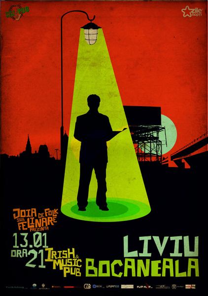Joi, 13 ianuarie 2011, ora 21:00, Liviu Bocaneala va cânta la Irish & Music Pub din Cluj-Napoca în cadrul concertelor „Joia de folk sub felinare„.