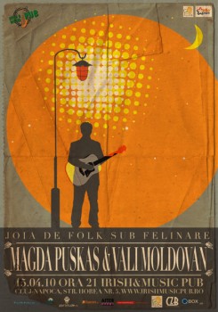 Joi, 15 aprilie 2010, ora 21:00, Magda Puskas şi Vali Moldovan vor concerta în Irish & Music Pub din Cluj-Napoca.