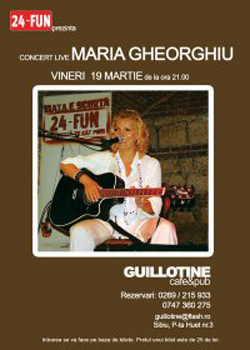 Vineri, 19 martie 2010, ora 21:00, Maria Gheorghiu va concerta în Guillotine Pub din Sibiu.