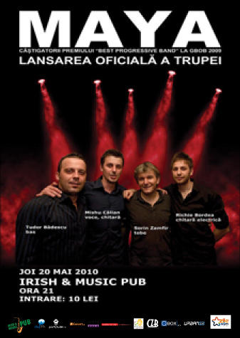 Joi, 20 mai 2010, trupa Maya va concerta în Irish & Music Pub din Cluj-Napoca.