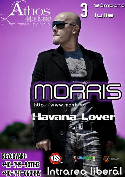 Sâmbătă, 3 iulie 2010, Morris va concerta în Club Athos din Baia Mare.