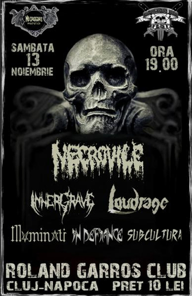 Sâmbătă, 13 noiembrie 2010, ora 19:00, Necrovile, Innergrave & Loudrage vor concerta în Roland Garros din Cluj-Napoca.